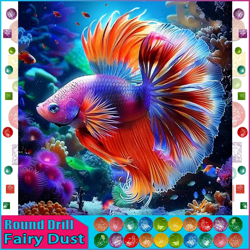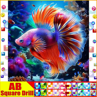 DIY Abstract Diamond Painting - AB Round/Square or Fairy Dust Round/Square Diamonds, Neon Goldfish