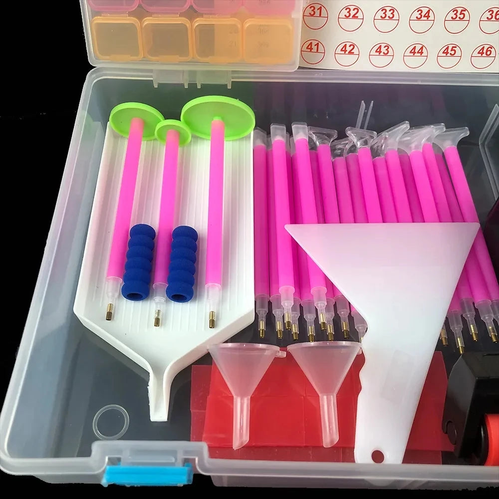 - 128 Piece Diamond Painting Tool And Accessory Kit - Storage Box, Roller, Drill Pen and More