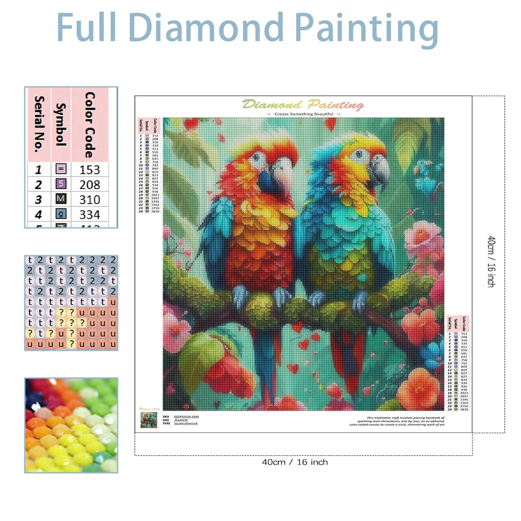 - DIY Animal Diamond Painting Kit - Full Round/Square 5D Diamonds, Vibrant Wild Parrots