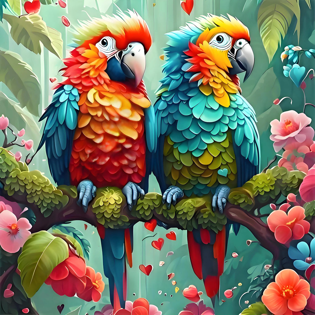 Bring the vibrant beauty of the jungle to life with this DIY Animal Diamond Painting Kit, featuring two colorful wild parrots perched in a lush tree. Available in both Full Round and Full Square 5D Diamonds, this kit lets you craft a stunning, lively scene filled with exotic charm and vivid color!