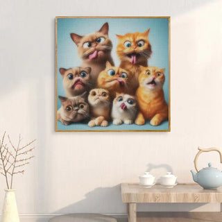 Unleash Your Creativity With This DIY Cartoon Diamond Painting Kit, Featuring A Whimsical Group Of Cat Friends Making Hilarious Faces, And Available In Both Full Round Or Full Square 5D Diamonds For A Stunning, Textured Finish. Perfect For Cat Lovers And Crafters Alike, This Fun And Relaxing Project Will Brighten Any Space With Its Playful Charm.