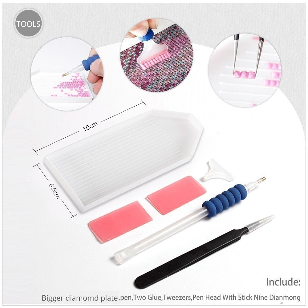 - 1 x Pen - the tool you will be using to transfer the diamonds from the tray onto the canvas. You could also use tweezers (sold separately in most cases).