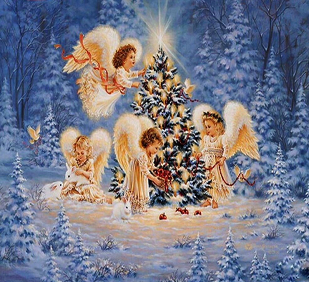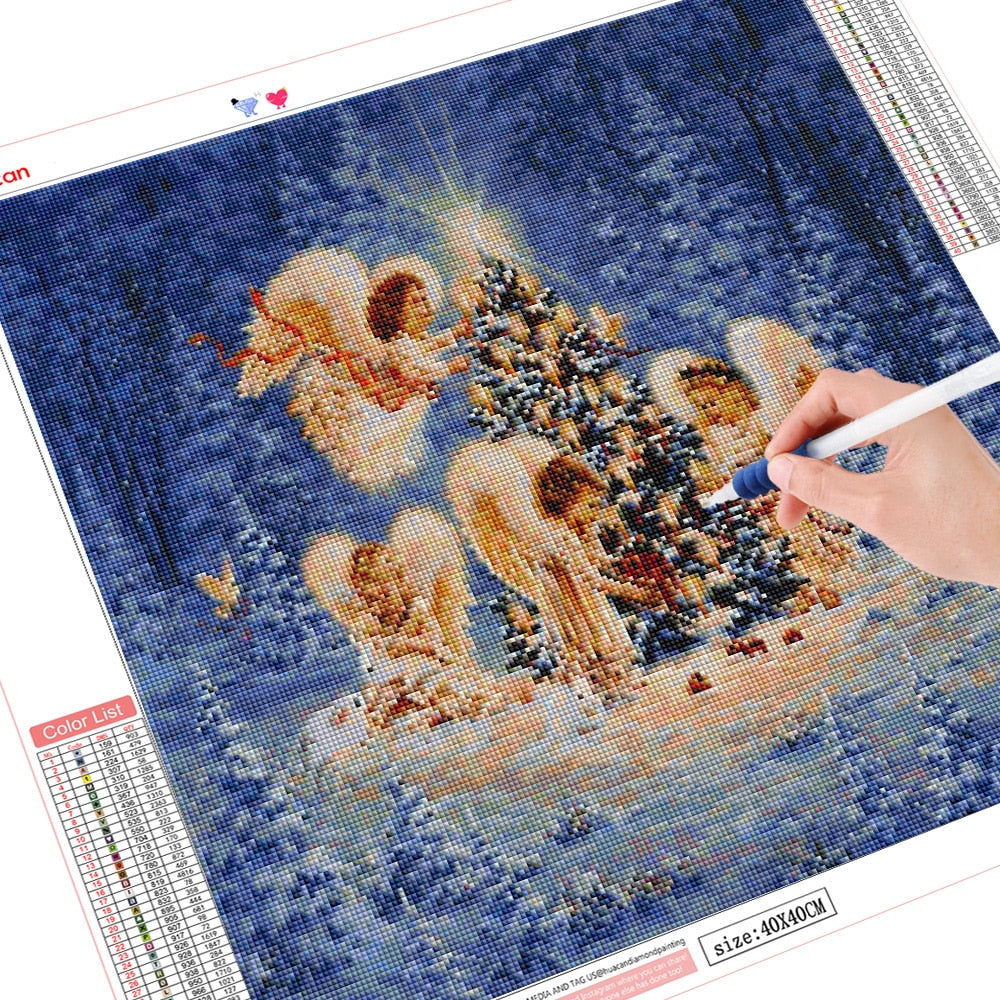 - Angels Decorate Christmas Tree Religious Holiday Diamond Art