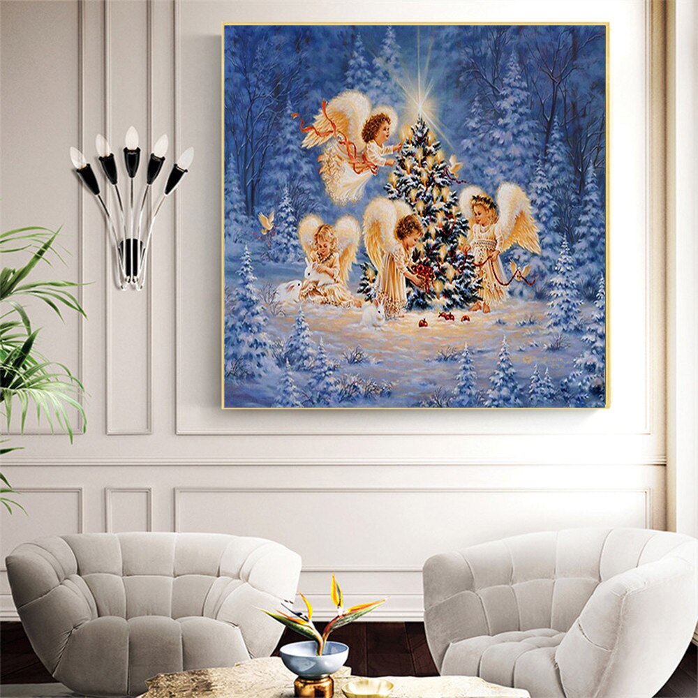 Angels Decorate Christmas Tree Religious Holiday Diamond Art