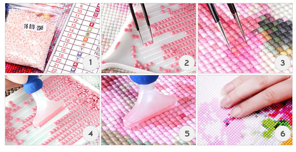 - 20-60 x Individually Labeled Diamond Packs - the core of your art, these are the little resin rhinestone pieces that you stick on to the canvas! Number of packs correspond to number of colors in your project, and will be different depending on the size and picture you choose.