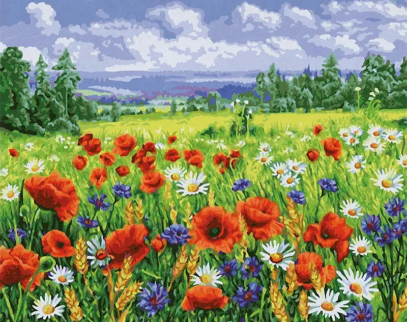 DIY Floral Diamond Painting - Full Round/Square 5D Diamonds, Wild Flower Field