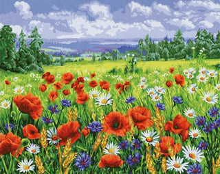 Rolling Field Of Red White and Blue Wild Flowers! Full Square/Round 5D Diamonds - DIY Floral Diamond Painting Kit - Add This To Your Flower Diamond Art Collection Today! Remember...The Larger The Canvas The Greater The Detail In The Finished Product!