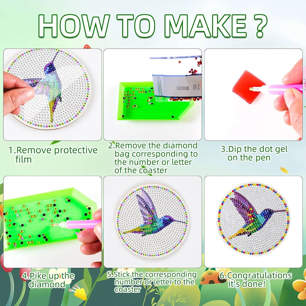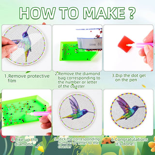 - Complete DIY Kit: Includes everything you need—10 coasters, a holder, clay glue, pen, and diamond tray. Simply peel, place, and enjoy!