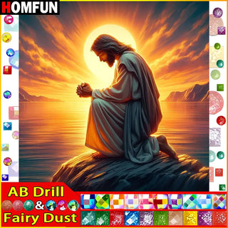 DIY Religious Diamond Painting - Fairy Dust/Aurora Borealis Round/Square Diamonds, Glowing Jesus Christ