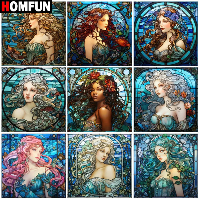 - Brown Eyed Woman - Portrait Diamond Painting, Full Square/Round 5D Diamonds, Stained Glass Design