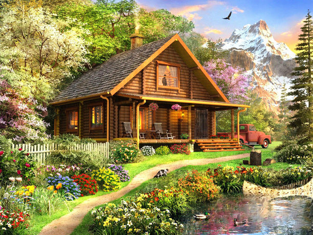 - Hideaway Cabin | Scenic Diamond Painting | DIY Diamond Kit | Full Round/Square Drill 5D Rhinestone Embroidery