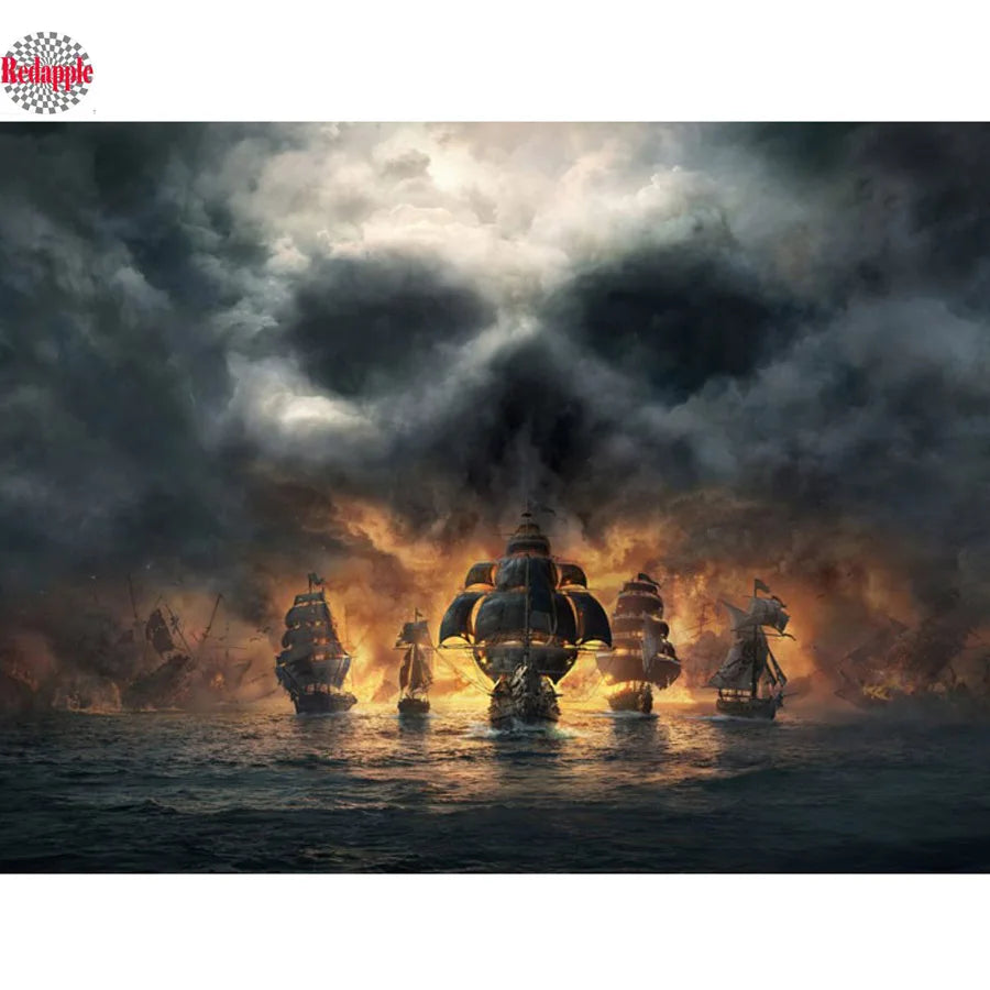 DIY Boat & Ship Diamond Painting Kit - Full Round/Square 5D Rhinestone Embroidery, Pirate Ships And Skull